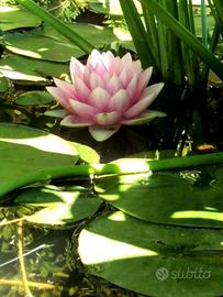Vendo una Ninfea di nome M.W.Gonnere, una ninfea rustica resistente al gelo di colore rosa tenue, con fiore doppio con il centro rosa più intenso. Può essere coltivata anche a mezz'ombra.