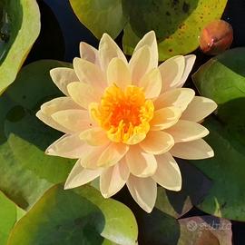 Vendo rimanenze di ninfea Mangkala Ubol. La ninfea in vendita è una ninfea rustica (resiste all'inverno) e presenta una fioritura abbondante fino autunno inoltrato con grandi fiori di color pesca.
