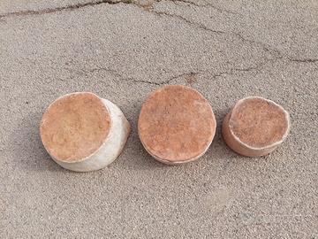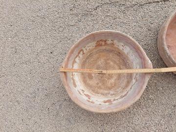 Tre grosse ciotole scodelle grezze in terracotta fatte a mano, misure diverse, come mostrato in foto. Artigianato di un tempo, utilizzate in passato nel mondo contadino.