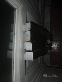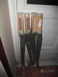 Nr. 4 piedi per mobili in legno color argento alti 77 cm. Disponibili, per inutilizzo, 2 bacchette angolari alte cm 150 circa e altre 4 di altezza diversa, 1 tappeto di gomma lungo circa 3 mt, 2 lastre di vetro fumè alte cm 227, vasi, sottovasi e portapiante balconiere, 1 cuscino/materassino per sedie a sdraio tipo Scab, 20 mensole e 15 specchi vari tipi, misure, colori, epoche, prezzi, 34 grucce appendiabiti miste, alcuni articoli per illuminazione.