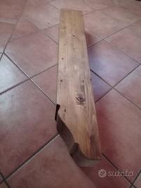 Vendo nr. 7 travi in legno colore noce chiaro con testa lavorata come da foto dimensioni lunghezza 1 m. Altezza 15,5cm. Larghezza 14 cm.