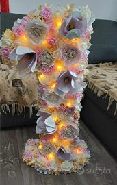 Grande numero 1 con fiori e luce fatto a mano. Ideale per primo compleanno. Altezza di numero 85 cm, base 24 cm.