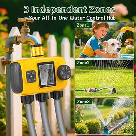 [Tre uscite per la massima flessibilità] Con il computer di irrigazione TRJZWA a 3 uscite è possibile irrigare contemporaneamente diverse piante. Ideale per i sistemi di irrigazione di giardini e balconi. Per un'irrigazione a goccia efficiente, è possibile impostare un programma di irrigazione giornaliero o settimanale, che può essere regolato in base alla durata e alla frequenza dell'irrigazione richiesta. Assicuratevi che le vostre piante siano perfettamente curate mentre siete in vacanza.