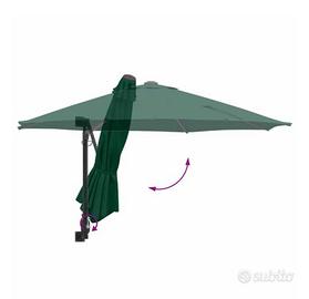 Ombrellone da giardino da muro, colore verde, dal design elegante e minimal. Struttura in acciaio con telo in poliestere resistente ai raggi UV, ideale per giardino o terrazzo.