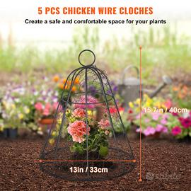 Obelisco di Protezione per Piante & Ortaggi da Giardino 33 x 40 cm Confezione da 5 Pezzi, Supporto a Campana di Protezione per Fiori Ortaggi da Giardino in Ferro con Fascette Totale da 5 Pezzi · Spazio Comodo per Piante: il supporto a campana per piante da giardino misurano 33 cm di diametro e 40 cm di altezza totale, nella confezione ci sono 5 pezzi. Fornendo un ampio spazio per la crescita delle piante. Il design a rete consente il passaggio della luce solare e della pioggia e tiene lontani gli animali, consentendo alle piante di crescere in modo sano e libero.