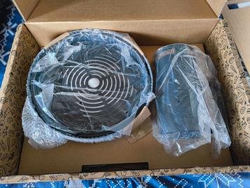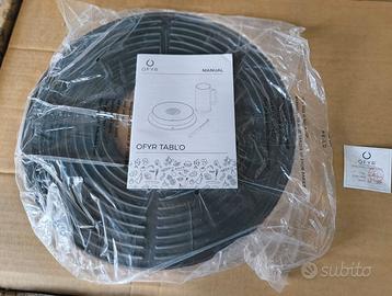 Splendido barbecue portatile in ghisa della Ofyr, marca top di gamma Può essere usato direttamente nel tavolo dove si mangia data la capacità di grigliare senza fare fumo e il supporto in materiale isolante. Perfetto anche per l'uso nei balconi dei condomini e simili Nuovo, inutilizzato. Causa regalo non necessario Dal sito: L'elegante Tabl'O OFYR assicura una serata meravigliosa e spensierata. Con la comodità di avere la vostra unità di cottura a tavola, potrete facilmente preparare un pasto insieme ai vostri amici e familiari. Di qualunque cosa si tratti, vivrete una eccezionale esperienza di cottura all'aperto, su bricchetti di cocco, che delizierà olfatto e gusto di tutti i presenti. ACCESSORI INCLUSI: Una delle maggiori caratteristiche di OFYR Tabl'O è il tempo di riscaldamento limitato: utilizzando il Quick Starter a doppia parete OFYR, incluso nell'acquisto di OFYR Tabl'O, sarete pronti per iniziare a cucinare in soli 15-20 minuti. Ideali da utilizzare con Tabl'O sono i bricchetti di cocco OFYR, eccezionalmente efficienti: si caratterizzano infatti per elevato calore, lunga combustione (2-3 ore), fumo e odore minimi e scarti molto limitati. Sono compatti e sostenibili al 100%, realizzati con gli scarti residui di noci di cocco. Usati in combinazione con il Quick Starter OFYR, fanno sì che Tabl'O sia pronto per l’uso in men che non si dica! Con OFYR Tabl'O è incluso anche The Tool, uno strumento che può essere utilizzato per regolare la circolazione dell'aria. Ruotando il contenitore interno è possibile aprire o chiudere le prese d'aria, regolando in questo modo il calore a proprio piacimento. Inoltre, The Tool può essere utilizzato per spostare il piano di cottura. Piastra cottura 39,5 cm. Griglia carbonio 36 cm. Contenitore int. 38,5 cm. Contenitore est. 40 cm. Vassoio 46,5 cm. Valuto scambi con forni pizza