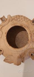 Grolla usata decorata in legno, diametro 19 altezza 7 cm senza coperchio