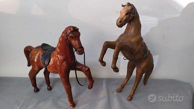 CAVALLO MARRONE LUCIDO IN LEGNO E CUOIO