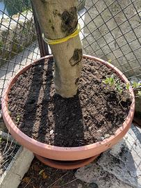 Olivo alto 3 metri, già produce olive. Molto gustose, tra l'altro. Piantata in vaso.