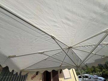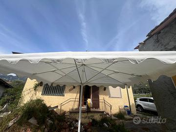 Vendo ombrello alluminio verniciato, telo resinato, materiali top x giardini, bar, mercati e fiere. Misure 320x440 nuovo comprensivo di sacco custodia e piedistallo in acciaio piatto