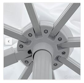 Ombrello da giardino bianco dimensioni aperto mt 3x3 con basamento direzionale. Con cappuccio di copertura per mesi invernali. Acquistato 2 anni fa da Leroy Merlin. (Prezzo acquisto 275 euro)