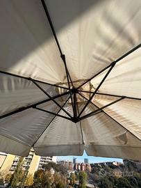 Vendo ombrellone da terrazzo o giardino 290cm x 290cm (quadrato), altezza 280cm circa. Il telo ha segni di normale usura.