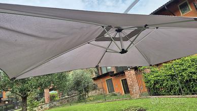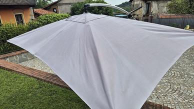Vendo ombrellone 3x2 in alluminio, molto leggero e pratico, con verricello per apertura e chiusura. Regalo insieme 2 mattonelle per fissaggio a terra (ne servono 4). Come nuovo!