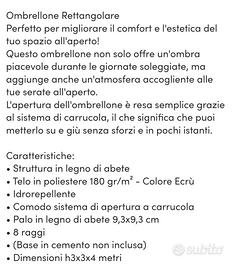 Ombrellone 3x4 in Legno di Abete bianco o Verde a 330euro 3x3 a 230euro Ombrellone Alluminio effetto Legno di Teak a 450euro Orientabile 360gradi a Compasso intorno al palo top qualità Pagamento contanti alla consegna a Roma whatsapp 351 73 02 126