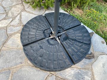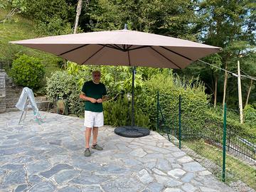 Il piede a forma di croce (in dotazione) può essere fissato in un terreno, oppure con me quattro casse originali di acqua che includiamo nel prezzo.