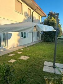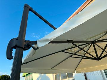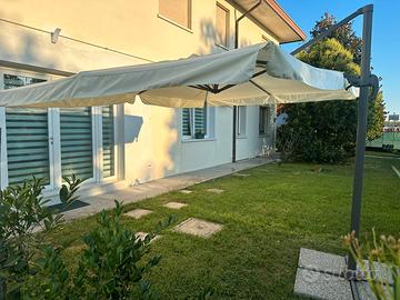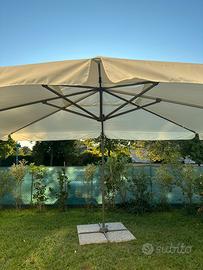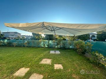 Vendo ombrellone decentrato 3x4 metri Telo idrorepellente colore beige Palo colore tortora Incluse piastre di cemento