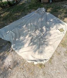 Ombrellone 5x3,5 in alluminio bianco dotato di panca in legno alla base in ottime condizioni. Usato pochissimo. Telo presente ma danneggiato.