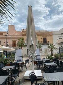 Vendo ombrellone telescopico 5x5 totale 25metri quadrati struttura in alluminio palo centrale in acciaio verniciato base in acciaio coperta con piedini in acciaio, il teloin pvc è strappato es e da sostituire ottimo per locali