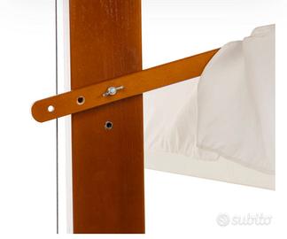 Struttura in legno di abete• Telo in poliestere 180 gr/m² - Colore Ecrù• Idrorepellente• Comodo sistema di apertura a carrucola• Palo in legno di abete 9,3x9,3 cm• 8 raggi• Base a croce stabile: Compatibile con mattonelle in cemento, zavorre in plastica riempibili o marmette (non incluse)• Dimensioni h3x3x4 metri compreso di marmitte per ombrellone .