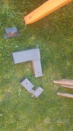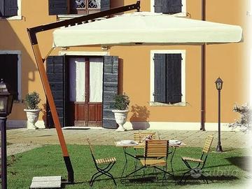 Vendo ombrellone a braccio con struttura in ferro e legno.. base rettangolare con 4 piastre.. tutta la struttura è stata smontata e riverniciata pronta da rimontare.. l'ombrellone è 3×3 circa.. il telo è da comperare o rifare... L'ombrellone è come quello della foto...