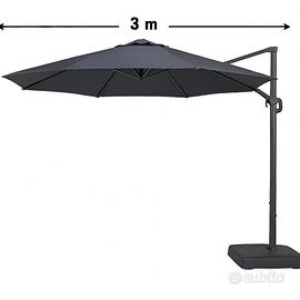 Vendo ombrellone da giardino grigio antracite, con struttura a braccio esterno. Ideale per creare una zona d’ombra ampia e senza ingombri al centro.