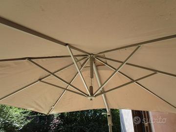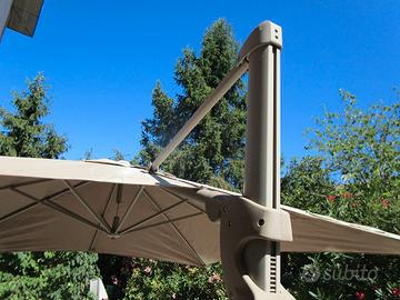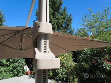 ombrellone in alluminio a palo laterale mod. Michigan con telo ecru, ....e piastre in cemento, aperto 310 x 310 x h. 260 (sf) possibilità di consegna domicilio