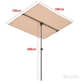 Misura cm. 130 x 180 ed è di color tortora. Il palo reggitenda è alto 2 metri.