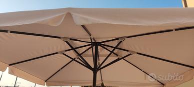 Ombrellone beige 4 mt.x 4 mt con piantana centrale compreso di 4 mattonelle 50 cm x 50 cm, in pietrisco, in ottime condizioni. Non spedisco. Vendita "visto e piaciuto".