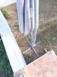 ombrellone ancora usabile, grigio con base e argano. funzionante . ritiro a mano