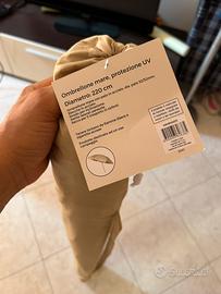 Ombrellone diametro 220 cm colore beige Stecche in acciaio Snodo regolabile Alette laterali parasole Sacca per il trasporto Inoltre insieme vendo base per ombrellone