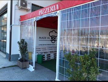 Telaiatura bianca in acciaio di supporto,chiusure laterali in pvc (su due lati) con aperture su entrambi.
