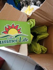 Ombrellone da giardino giallo rotondo ancora in scatola mai usato consegna a mano Roma zona garbatella