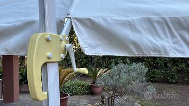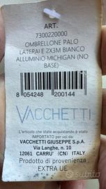 Usato poco, nei mesi invernali conservato bene sempre in garage. Telaio in alluminio Solo la base è stata tenuta all’aperto ma si presenta bene. L’ombrellone consente diverse regolazioni e rotazione. Vendo per cambio casa in cui non ne ho bisogno. Marca Vacchetti A parte vendo 4 lastre di pietra per fare la base a 10€ cadauna