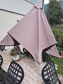 Vendo ombrellone da giardino dimensioni m 3x3, telo nuovo appena cambiato, in perfette condizioni, compreso la zavorra se volete. Vendo perché metto un gazebo. No spedizione