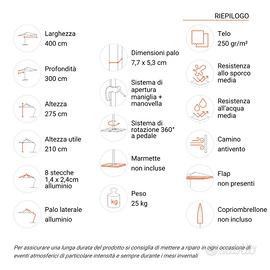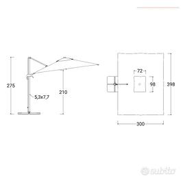 Come nuovo acquistato a settembre 2025 Compreso 4 marmette in ghisa e copertura per l'inverno. È la scelta perfetta per chi cercafunzionalità e stile in un’unica soluzione.Grazie al sistema di apertura con maniglia e manovella, aprirlo è un gesto fluido e immediato, mentre il palo lateralecon rotazione a 360°tramite pedale ti consente di orientare l’ombra senza dover spostare la struttura. Le8 stecche assicurano stabilità e robustezza, mentre il camino antivento contribuisce a migliorare la circolazione dell’aria e a contrastare le raffiche leggere. Il telo in poliestere da 250 g/m² offre unabuona protezionedal sole, una resistenza media all’acqua e allo sporco, ed è perfetto per accompagnarti durante tutta la stagione estiva. Ledimensioni generoselo rendono ideale per ombreggiare con efficacia zone pranzo, salotti outdoor o lettini prendisole.