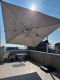 Ombrellone completo di basamento mobile con rotelle + copertura.