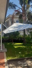 Ombrellone palo laterale in alluminio colore bianco completo di 4 pesi in cemento in buone condizioni.