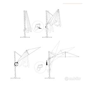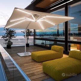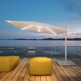 Ombrellone da giardino, colore bianco, nuovo, mai usato, misura copertura, aperto 3x3 metri, altezza 2,6 metri, con luci LED a carica solare. Le misure dettagliate sono tra le immagini.