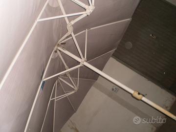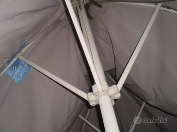 Vendo ombrellone per cessata attività è stato usato per bancarella da mercato, buono per giardino /balcone o da campeggio, vedasi foto per rendersi conto della fattura dello stesso.