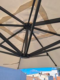 Ombrellone deportato 3M x 3 con rotazione di 360°, base a croce e tela di protezione praticamente come nuovo