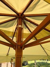 Ombrellone da giardino cm 400x300 con base inclusa. condizioni come nuovo, lavato completamente con idropulitrice. altezza totale da chiuso 270 cm altezza massima apertura 215 cm. Struttura molto resistente in legno, 3 scelte di altezza apertura. Telo in poliestere idrorepellente. Compreso anche il piedistallo in ferro molto pesante. Costo 180 euro.