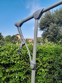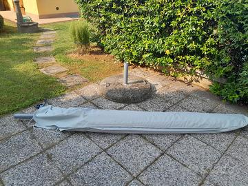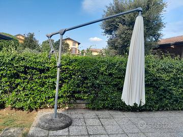 Ombrellone da giardino decentrato e orientabile Glatz, struttura in alluminio, con base in cemento.