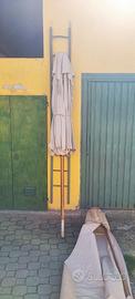 vendo ombrellone da giardino professionale in legno teck, usato un paio di estati, ma tenuto benissimo, tessuto perfetto, con copertura e asta di ricambio, robustissimo misure 280x280cm alto 260cm. veramente un AFFARE, marca Roda