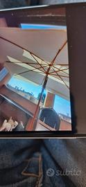 in ottime condizioni ombrellone da diario 3,50x300 legno e stoffa compreso piede d'appoggio in cemento