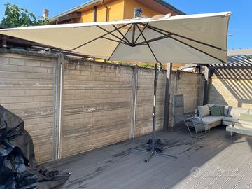 Ombrellone regolabile 2,5mt X 2,5mt colore beige e con led integrati con funzionamento a pannello solare. Praticamente nuovo mai usato perchè troppo grande per il mio spazio
