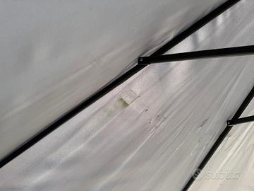 Vendo ombrellone da giardino mai utilizzato perché l’esposizione del terrazzo non permetteva di usarlo. È sempre rimasto chiuso quindi perfettamente funzionante. Il telo presenta alcune zone macchiate ( vedi foto) ma si puliscono facilmente. Misura larghezza 270cm. I mattoni sono esclusi.