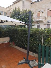 Ombrellone da giardino con palo laterale, diametro 3,40 MT. Copertura di colore ecrù, base a croce.