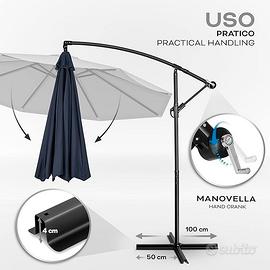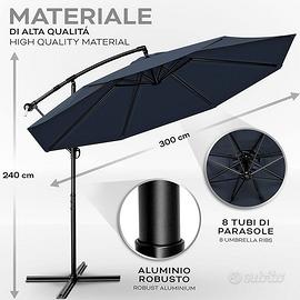 Vendo ombrellone di 3m dí larghezza e alto 2,40m in alluminio e con struttura robusta, protezione da pioggia e raggi UV.