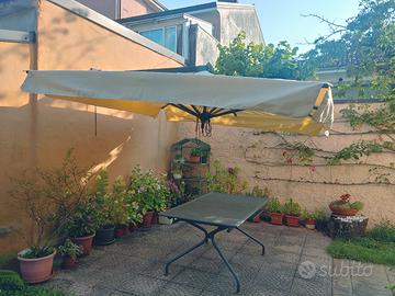 Vendo ombrellone da giardino a parete misura 300cm x 300cm usato pochissimo. Tessuto:acrilico ecru` Struttura portante e stecche in alluminio.