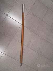 Ombrellone da spiaggia vintage con decoro a semicerchi sulle tinte dell'azzurro e del blu. Struttura in legno e metallo, smontabile in due pezzi e con la parte superiore snodabile. Diametro circa 190 cm. Vendo visto e piaciuto.